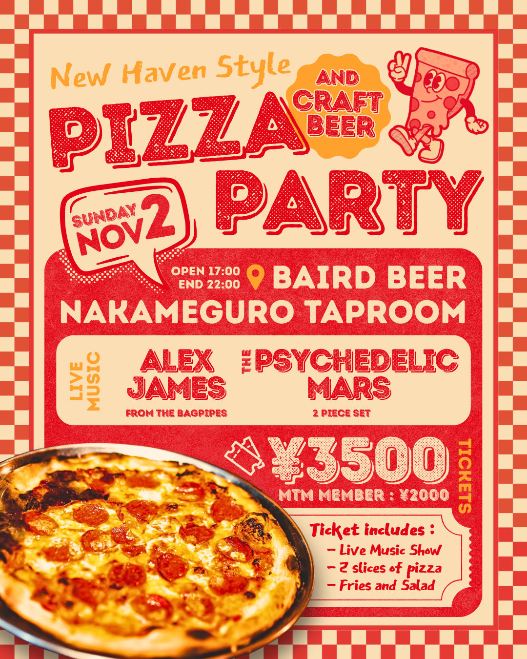 Baird Beer's Nakameguro Taproom doesn’t just serve delicious craft beer. They are also a home to New Haven–style pizza, known for its high-temperature baking, fresh seasonal toppings, and irresistibly crispy, light crust.