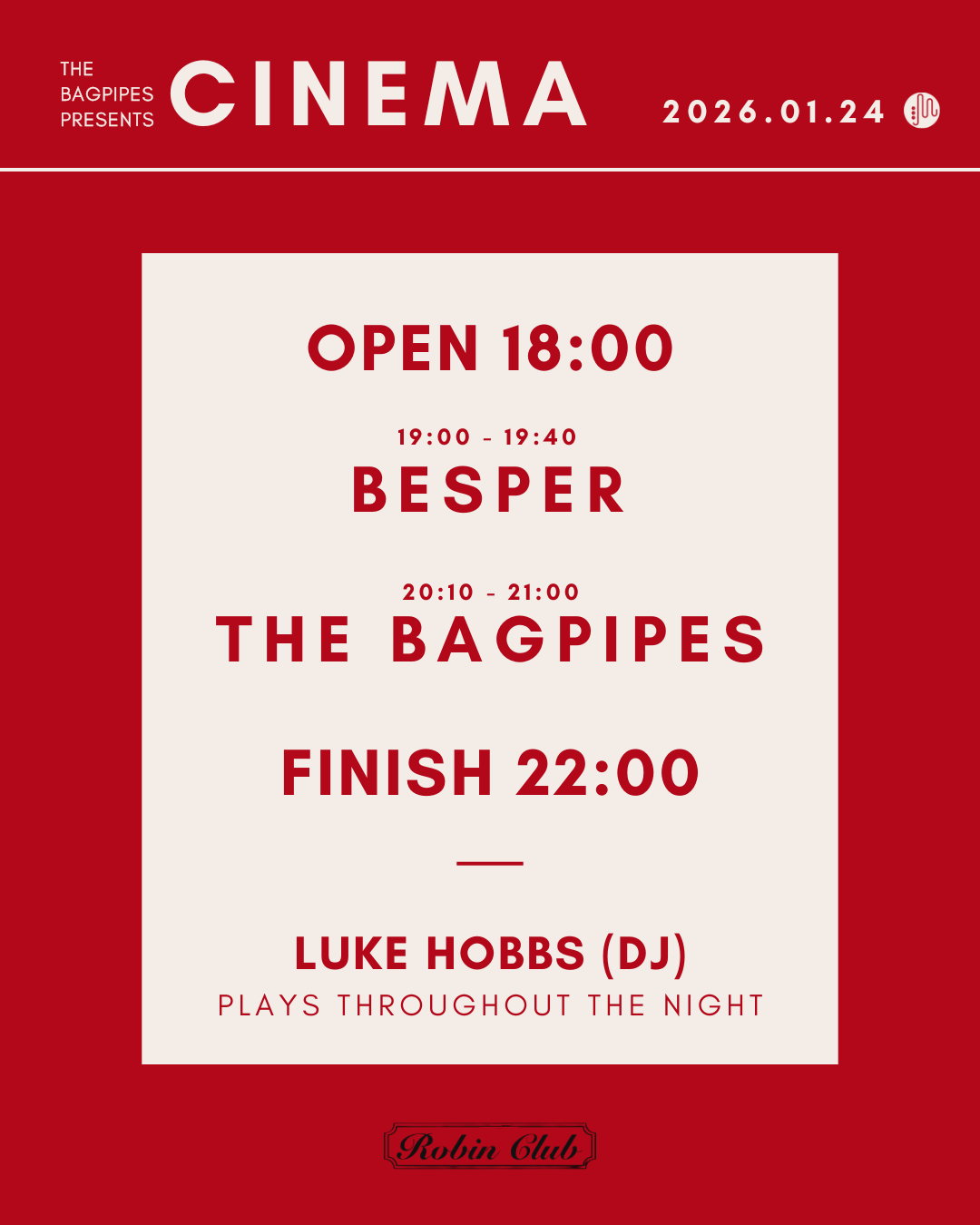 The Bagpipesが進める1年間のリリース企画、その第2弾となる自主企画ライブは、彼らの鮮やかなロックサウンドと、BESPERのソウル・ジャズ・City Popを織り交ぜた滑らかな“Cool & Pops”を贅沢に味わえる夜です。対照的な2組が織り成すサウンドは、東京の新しい音楽シーンの広がりを感じさせます。優れた音響と心地よい空間で知られるRobin Clubが、その魅力を余すことなく届けます。